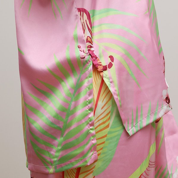The cheerful floral print of this pajama set adds a lively and vibrant touch to your wardrobe. Drawing inspiration from the colors of summer, it encapsulates nature’s beauty while giving you a refreshing feel every time you wear it. Perfect for casual indoor wear or even as a stylish loungewear statement, this set brings summer right to you in the most delightful way.